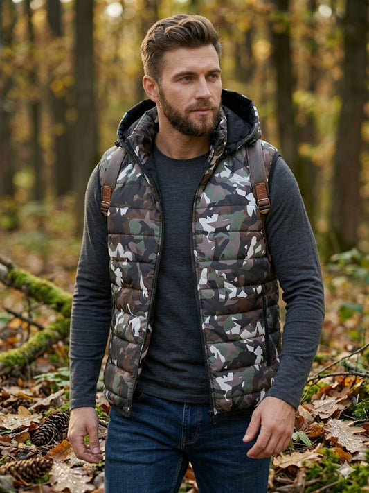 599 Мъжка камуфлажна грейка с регулируема и сваляща се качулка