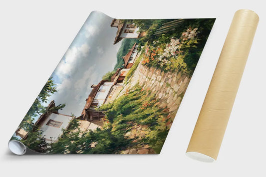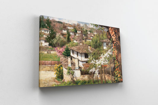 Код: 259 Пролетен Пейзаж къщи и цветя сл. Боженци