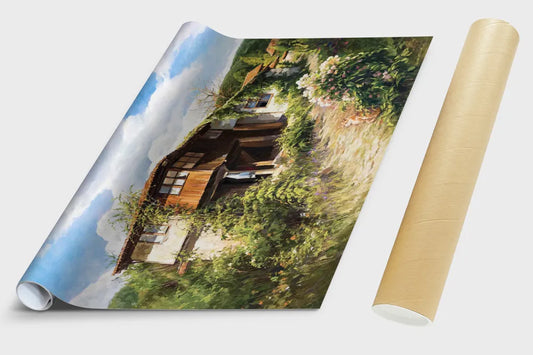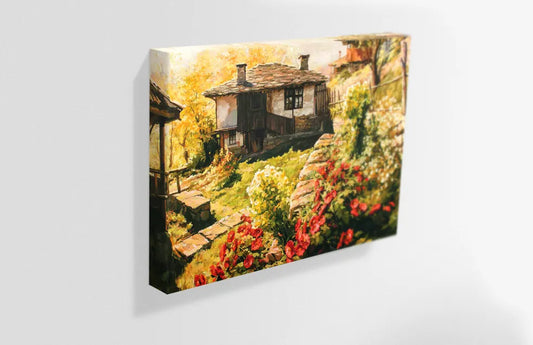 Код: 133 Есенен Пейзаж на Къща и червени цветя в Стара Планина