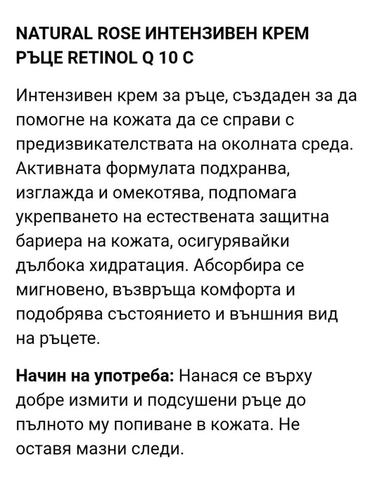 Интензивен крем за ръце Natural Rose Retinol Q10