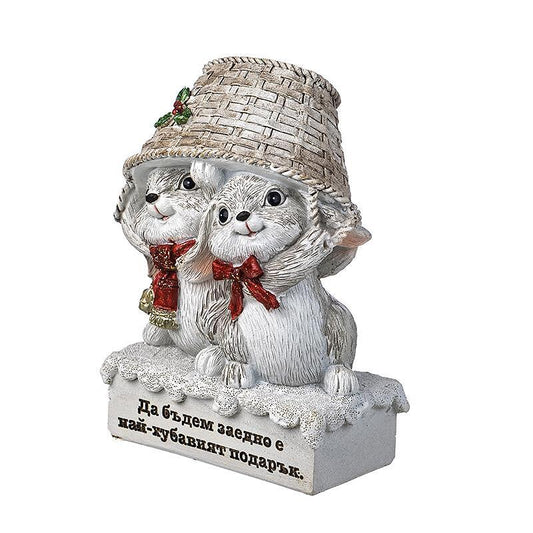 KN077: Коледна статуетка зайчета с надпис ,,Да бъдем заедно е най-хубавият подарък,,