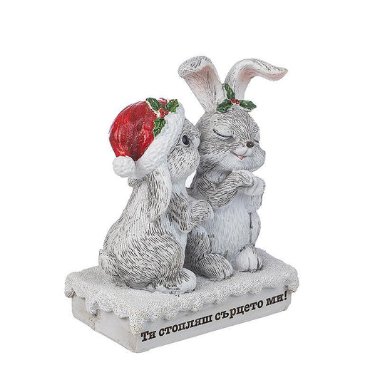 KN079 : Коледна статуетка зайчета с надпис ,,Ти стопляш сърцето ми!''