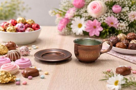 Медна чаша за кафе с чинийка