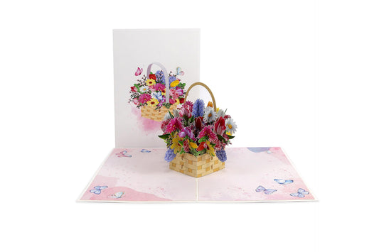 Поздравителна картичка Pop-up, Кошница с цветя 10732