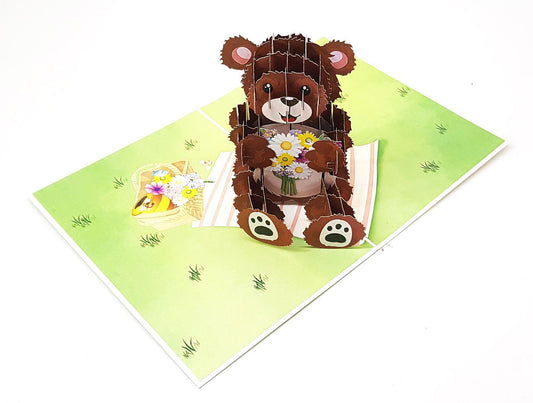 Поздравителна картичка Pop-up "Мече с букет" 10721