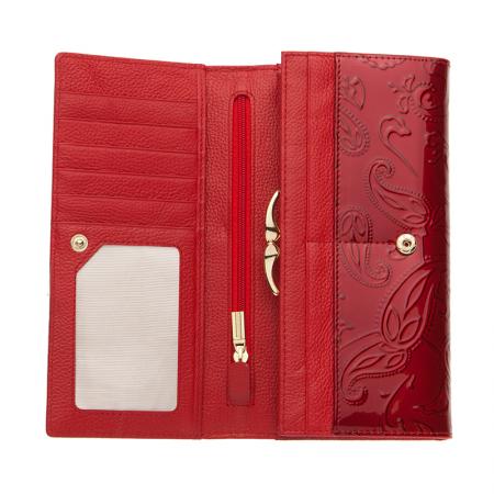 RSC0203: Дамско портмоне цвят Червено Гланц с листа ROSSI