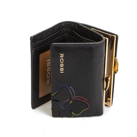 RSC0013: Малко дамско портмоне цвят Черен с пеперуда ROSSI