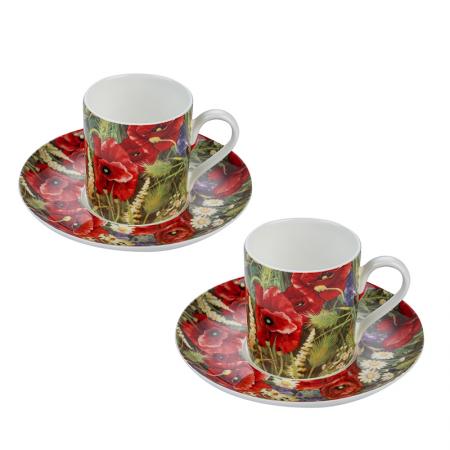975808: Порцеланов комплект за еспресо 2 чаши + 2 чинийки Макове