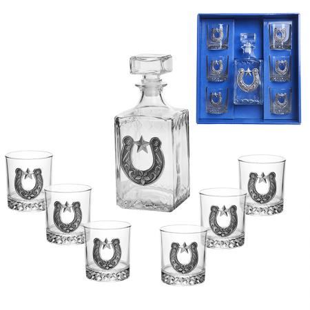 DG077: Сет от бутилка + 6 чаши за ракия с подкова