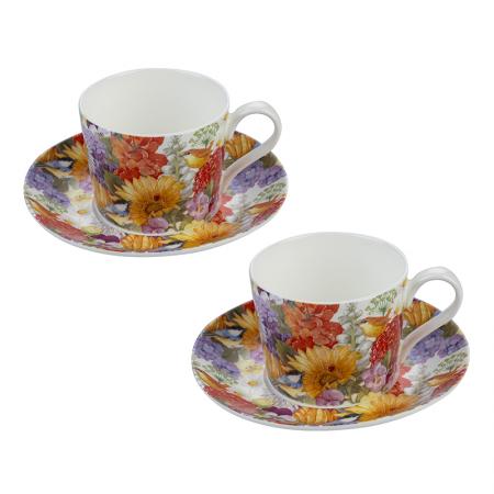 978329: Порцеланов комплект за кафе 2 чаши + 2 чинийки Слънчоглед