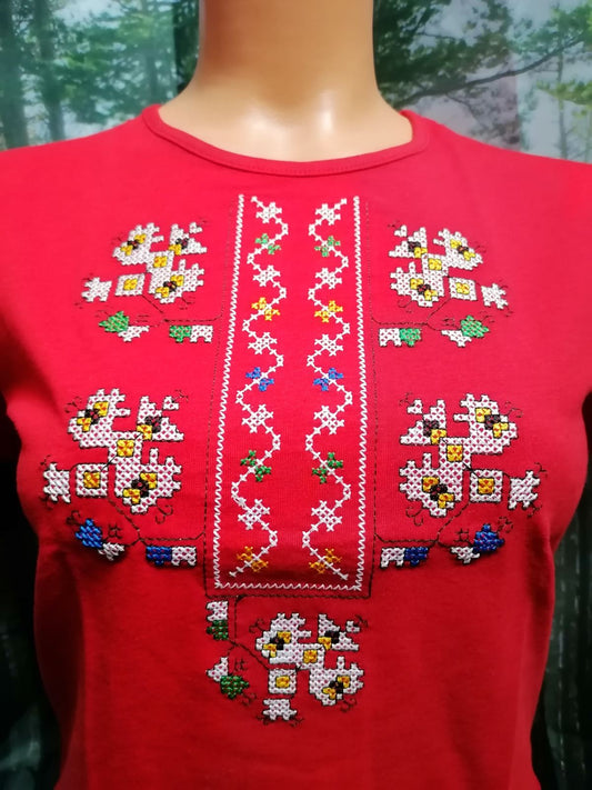 Women's red t-shirt with Gabrovi embroidery - embroidered