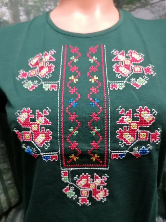 Women's green t-shirt with Gabrovi embroidery - embroidered