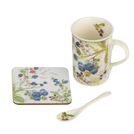 957955: Porcelain coffee cup + spoon, coaster and box - Blueberry