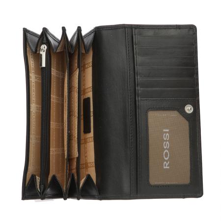 RSC3418 Women's wallet made of genuine leather with crocodile effect - black ROSSI