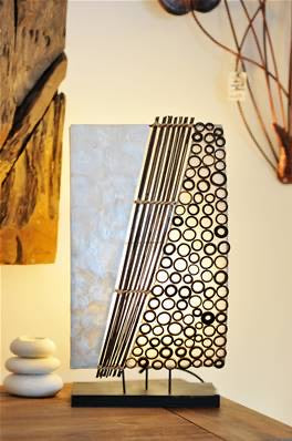 7109491 Настолна лампа от седеф и бамбук. Леко заоблен профил.