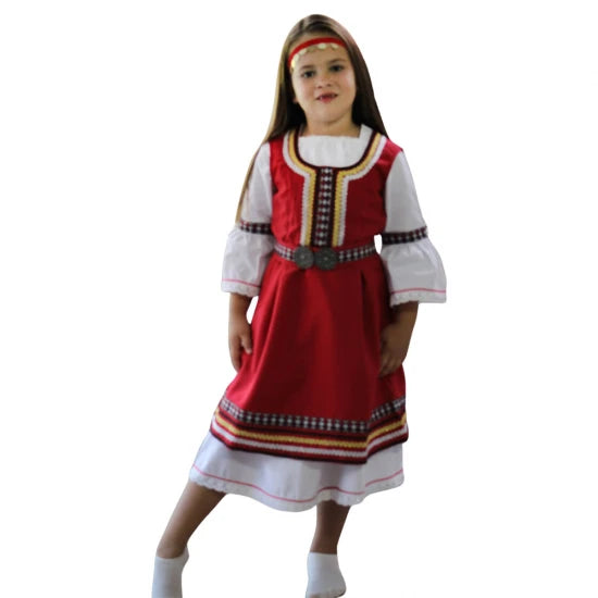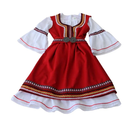 Красива българска носия за момиче, изработена с внимание към всеки детайл. Комплектът включва: