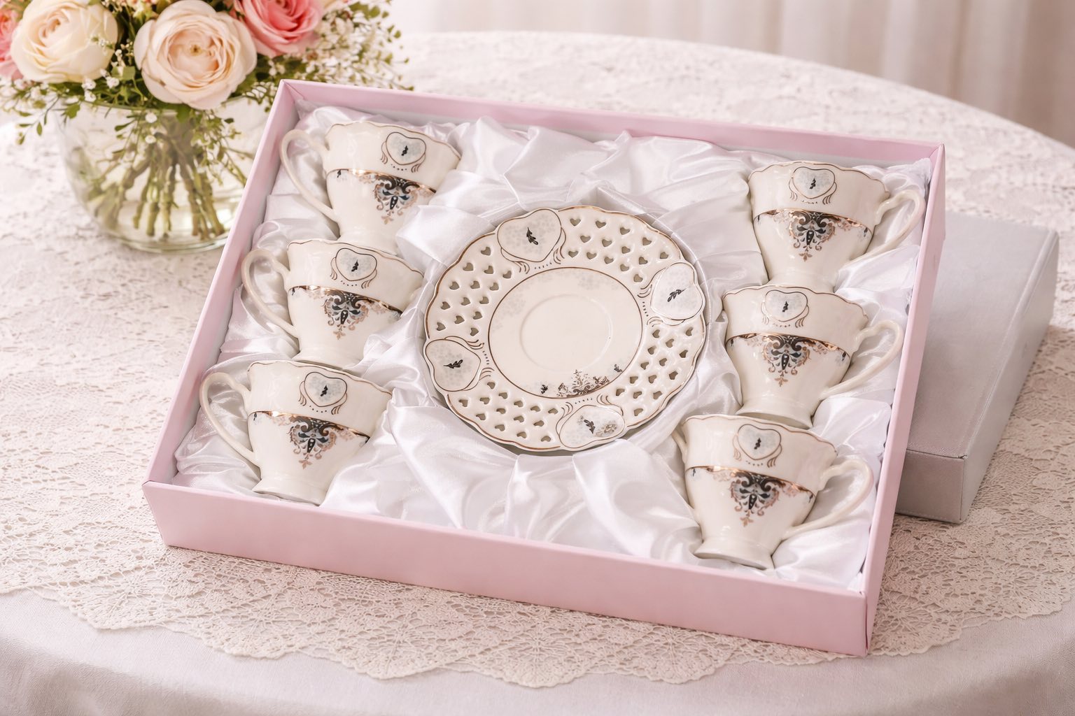 79028726 Луксозен сервиз за кафе с кант дантела