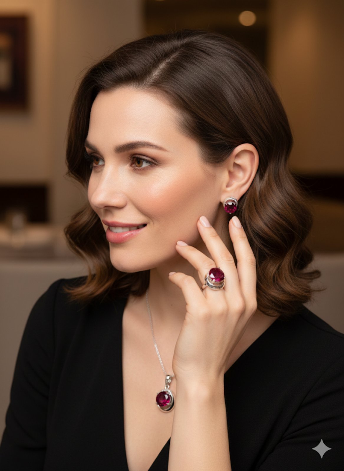 Всяко изделие се продава по отделно. За пръстена се чака 10 дни за изработка,ако нямаме вашия размер наличен. Бижуто може да се изработи в различни цветове. Бижуто може да се изработи в различни цветове. Камъка е с размер 7мм. - синтетичен рубин.