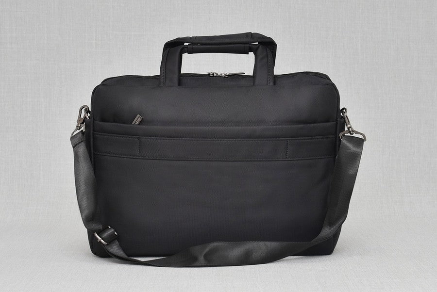 С джоб с цип на гърба, две дръжки за ръка и отделна дръжка за рамо.