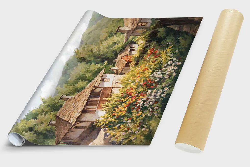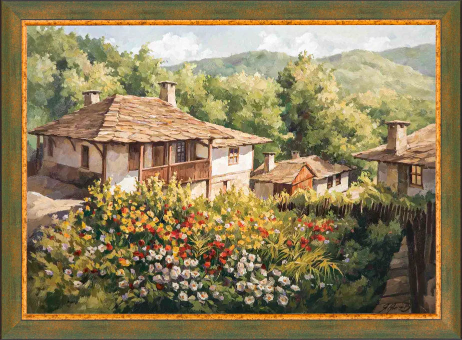 Код: 288 Пролетен Пейзаж къщи и цветя с. Боженци обл. Габрово
