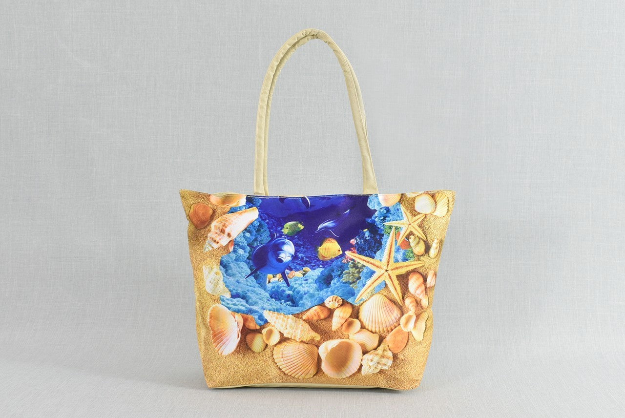 Плажна чанта от текстил, удобна и практична, закопчава се с цип.