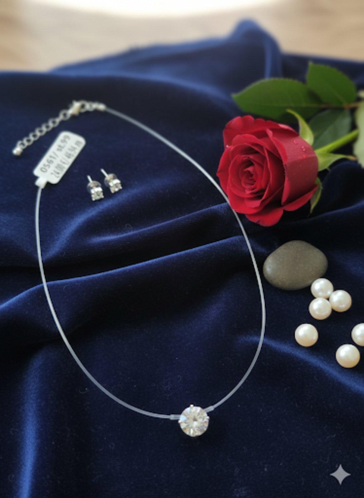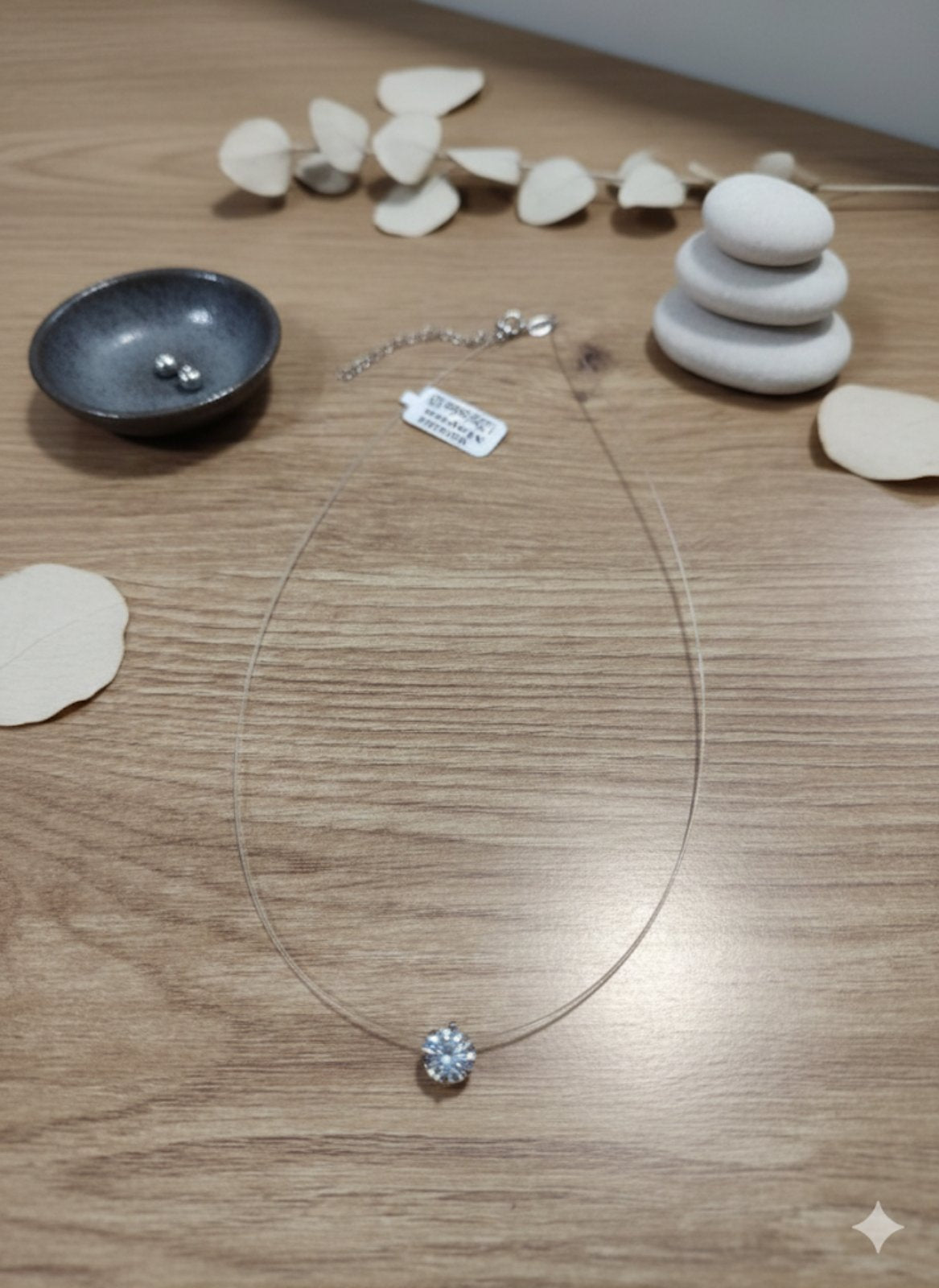 Дизайн: Тънка, прозрачна корда (силиконова или найлонова), която е почти невидима върху врата, подчертавайки красотата на висулката.
