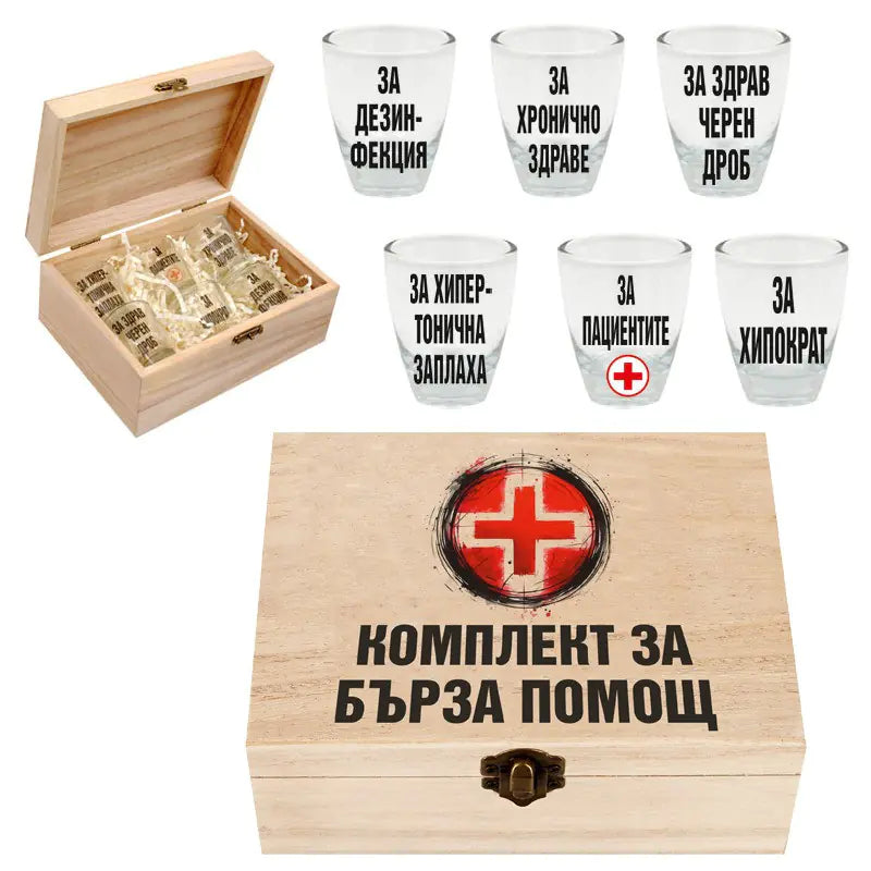 Кутия "Комплект за БЪРЗА ПОМОЩ" /дърво/.