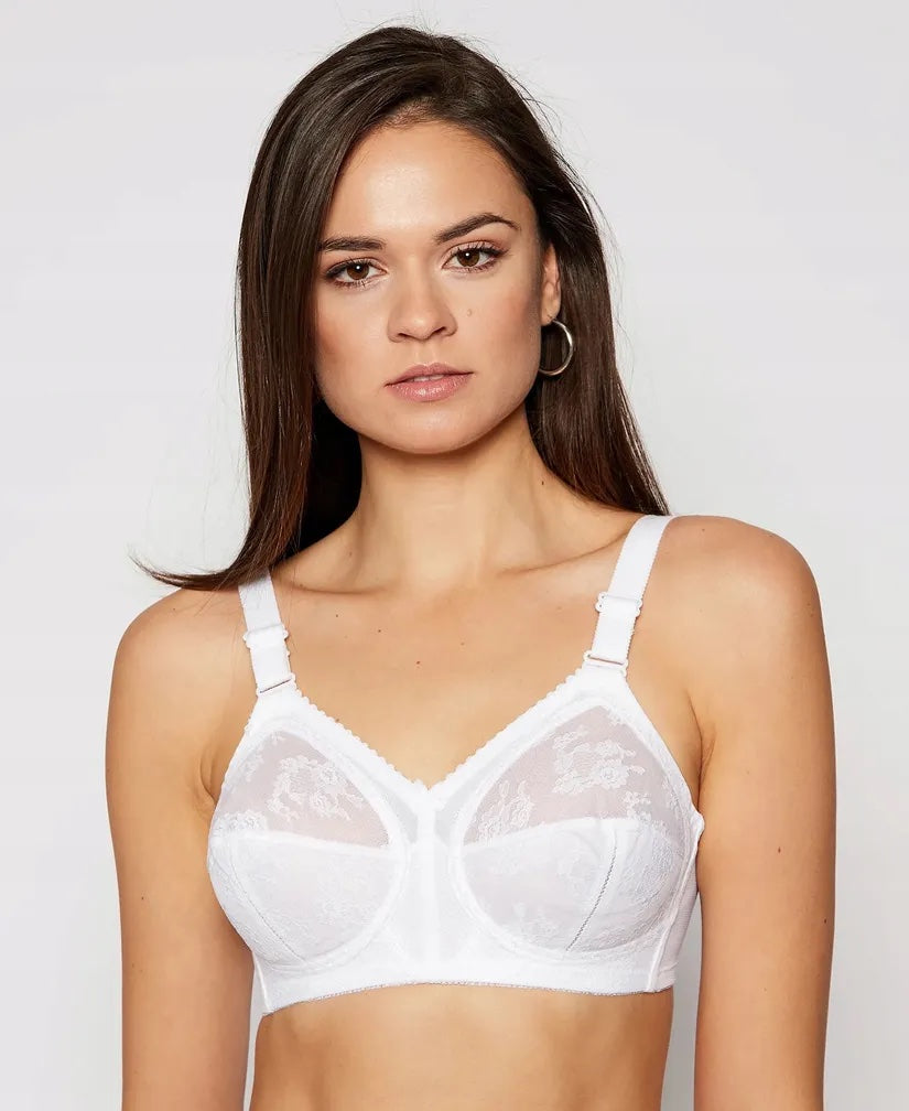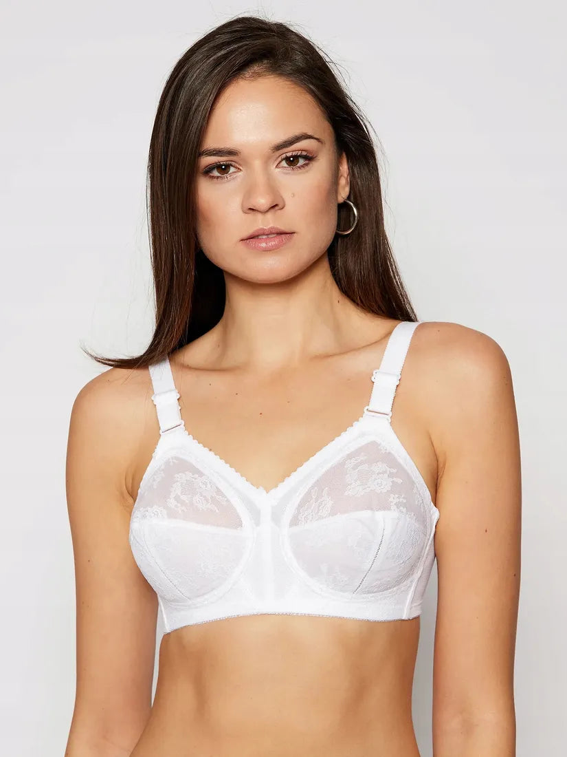 Сутиенът Doreen от Triumph е един от най-продаваните сутиени; -Има оформящ ефект; -Създаден е за перфектно покритие на бюста с много добра опора, включително за големи чашки и обиколки; -Напречната кройка в комбинация с надлъжната кройка благоприятно ограничава гърдите, оформяйки ги в красиво очертана форма; - Сутиенът е без кабели, без подплънки, с полупрозрачни дантелени чашки на цветя и долната половина на чашката е с подплънки; -Широки, удобни, регулируеми презрамки;