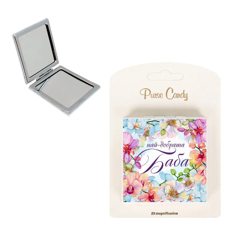 Размер на огледалото /затворено/ - 7,2 см. х 7,2 см. х 1 см.