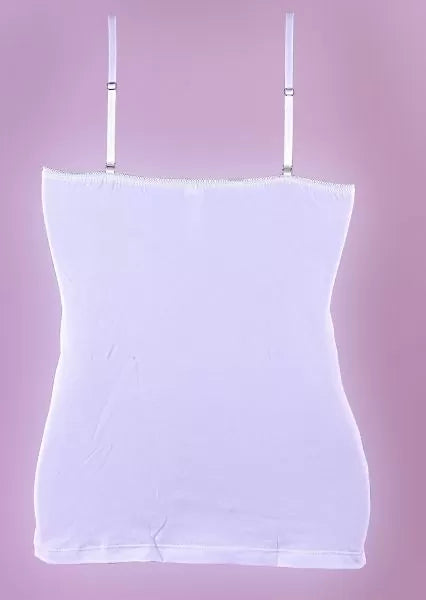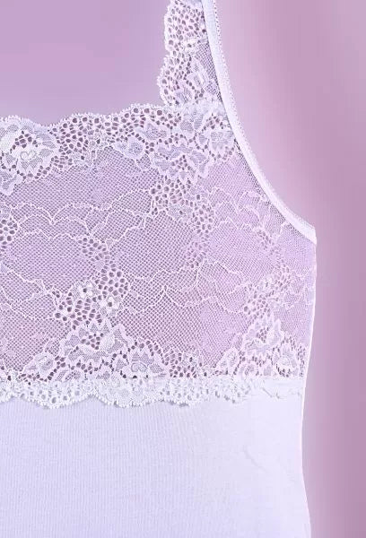 Луксозен дамски корсаж в бял цвят. Този модел е красиво съчетание от две материи: дантела на бюста и дантелен акцент на презрамките и памук/еластан - основната част. За максимално удобство презрамките са регулиращи се. Състав: