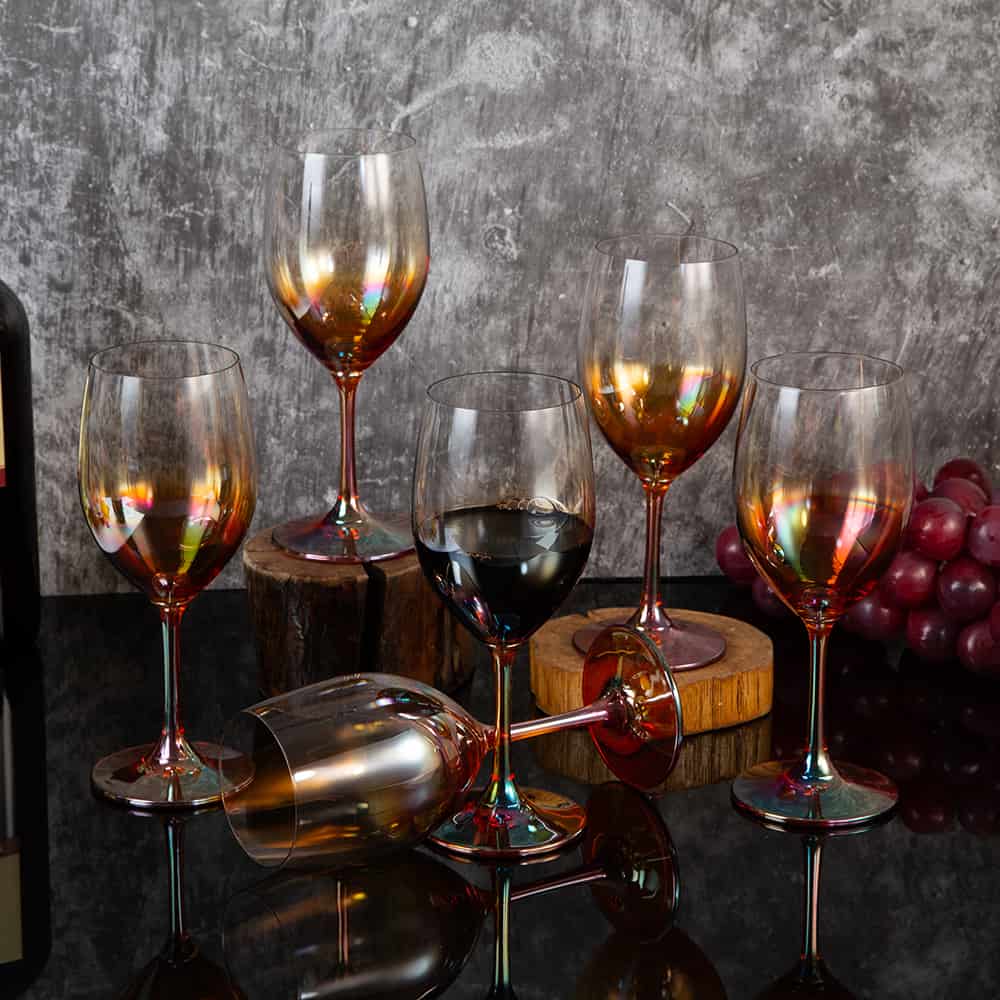 17335 Чаши за червено вино от серията Gold. Комплектът съдържа шест чаши с оригинален дизайн. Предлага се в стилна кутия. 410204 серията Gold. Страна произход Китай. Подарък за Трифон зарезан. Подарък за винари.