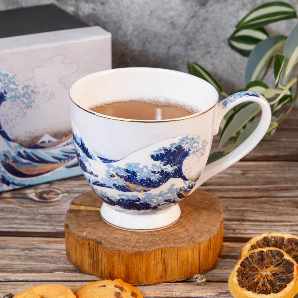 Декорът е дело на японския художник Кацушика Хокусай.Хокусай е най-известен с поредицата печатни графики „Тридесет и шест изгледа към Фуджи“, включваща неговия шедьовър „Голямата вълна край Канагава“. С тази поредица той получава широко признание както в Япония, така и по света. Тя оказва съществено влияние върху европейското изкуство. Подаръчната чаша се предлага в подаръчна кутия. Материал: керамика, размер: 500мл