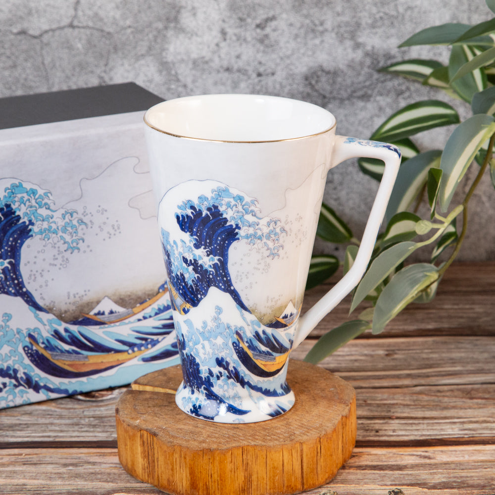 Декорът е дело на японския художник Кацушика Хокусай.Хокусай е най-известен с поредицата печатни графики „Тридесет и шест изгледа към Фуджи“, включваща неговия шедьовър „Голямата вълна край Канагава“. С тази поредица той получава широко признание както в Япония, така и по света. Тя оказва съществено влияние върху европейското изкуство. Подаръчната чаша се предлага в подаръчна кутия. Материал: керамика, размер: 630мл