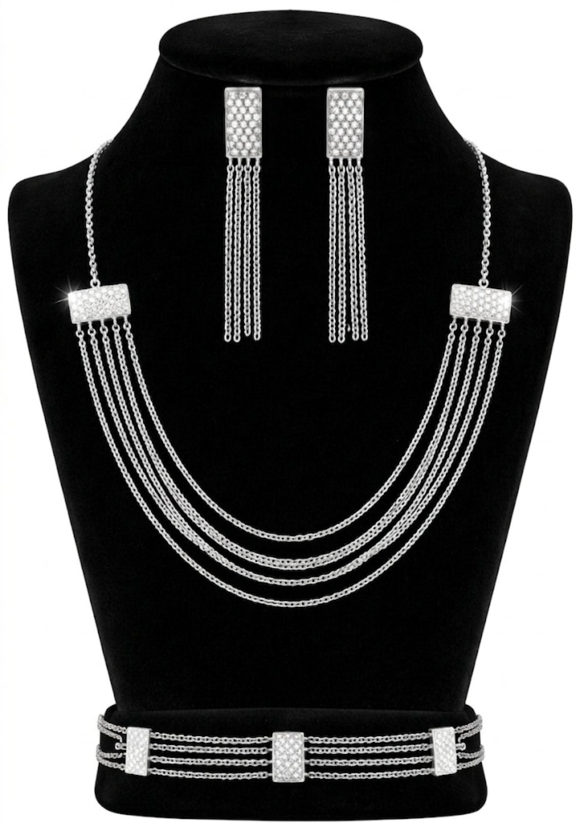 Колие с дилжина 50см. + 5см. удулжител. Обици с дължина 7 см.