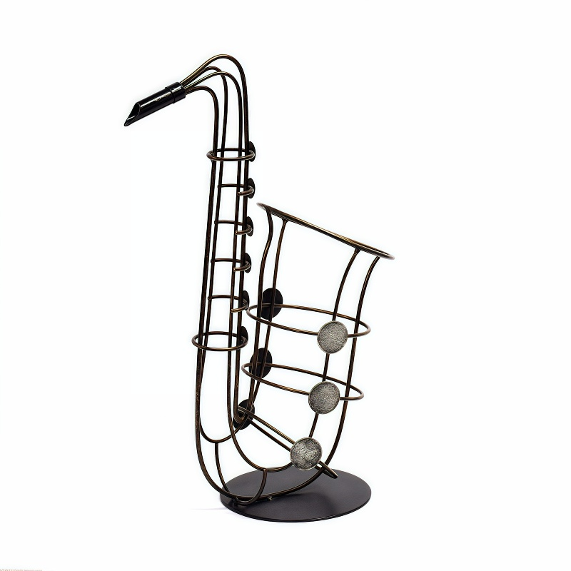 Елегантна метална стойка във формата на тромпет. Подходяща за вино или други бутилки, чудесен акцент за музикални любители и оригинален подарък. Любители на виното. Подарък за баща. Подарък за имен ден. Подарък за приятел. Подарък за музикант.. Подарък за рожден ден. Подарък за съпруг. Поставка за вино. Съвенири за мъже. Подарък за бар.
