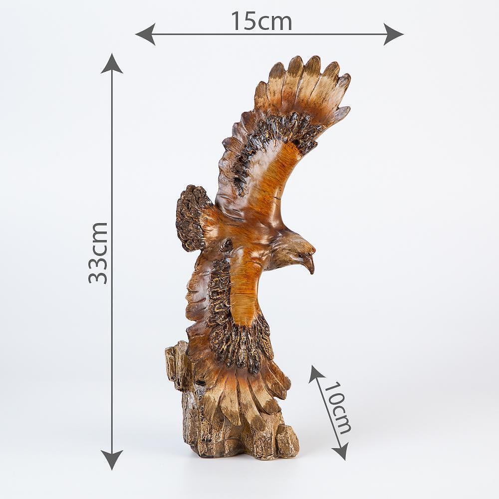 Описание: Орел кръжащ около скала. Олицетворява на мъдрост, знания, свобода и сила. Един от най- древните символи на божественото. В Персия се смятало, че появата на орел над бойното поле предвещавало победа. Подходящ подарък за юбилей и рожден ден. Материал: Полирезин, размер: 15*10*33.5 см