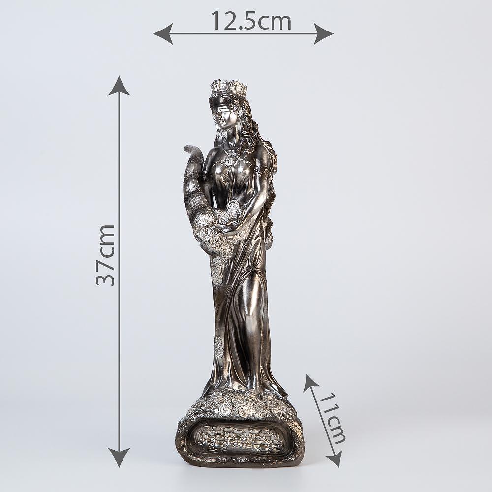 Статуетката на Фортуна представя могъща сила за създаване на личния късмет и благополучие. Тя вдъхновява към преодоляване на предизвикателства и достигане на целите. Материал: Полирезин, размер: 12.5*11*37 см