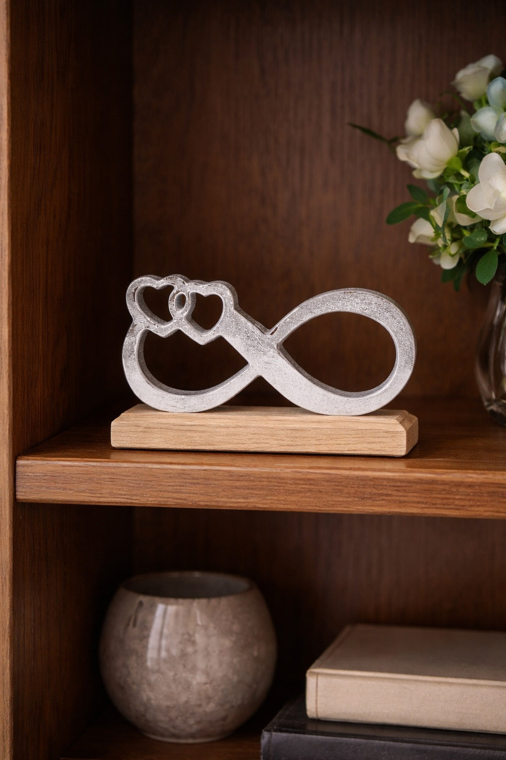 Декоративна статуетка безкрайност. Абстрактна статуетка със семпли и красиви извивки, символ на безкрайността и вечността. Подходящ подарък за любим човек, носещ послание за лоялност и вечна любов. Категории: Дървени статуетки, Подарък за баща, Подарък за майка, Подарък за рожден ден, Подарък за сватба, Подарък за Свети Валентин, Подарък за съпруг, Подарък за съпруга, Сувенири, Сувенири за жени, Сувенири за мъже