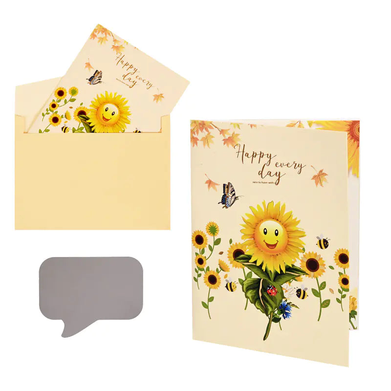 Луксозна 3D картичка "Букет Слънчогледи" с плик и място за надписване на пожелание.