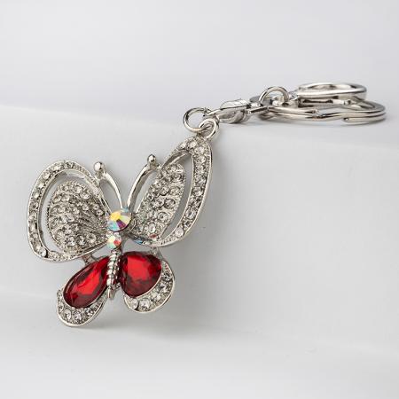 Описание: Модерен ключодържател, подходящ аксесоар за дамска чанта и раница. Ключодържателят е с формата на пеперуда. Дължина 11 см.