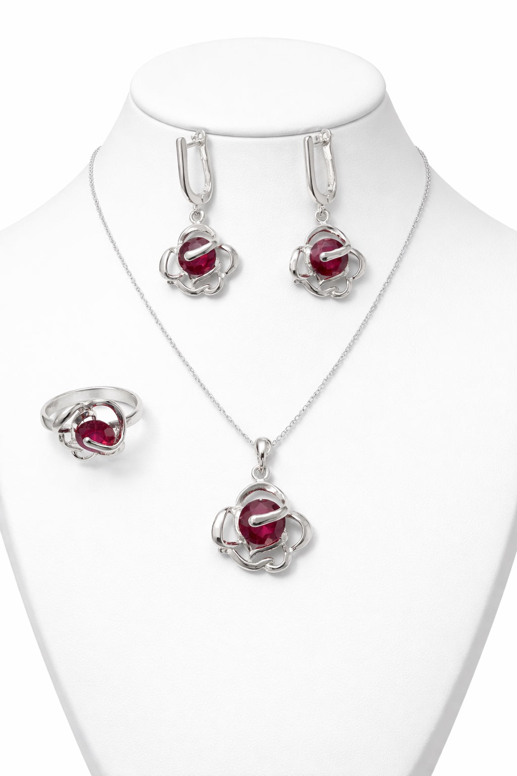 K 1845 / 491 Сребърни бижута с камък рубин. Сребро и рубин