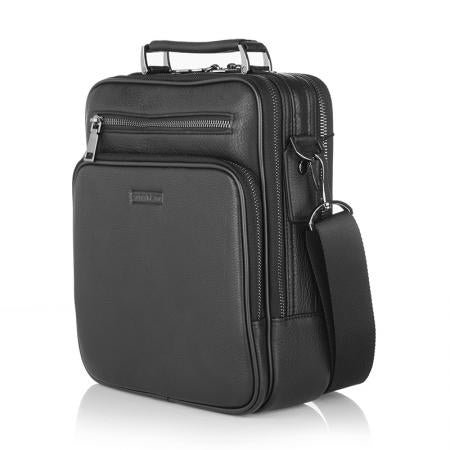 SFH06: Мъжка черна кожена чанта SILVER FLAME
